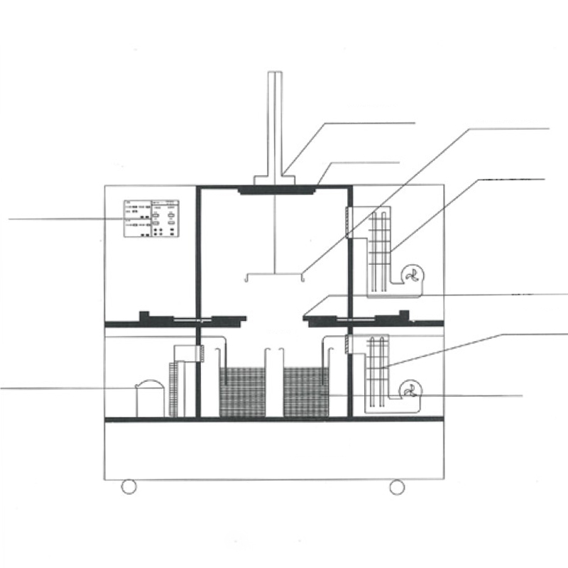 2.4. La camera interna della camera di nebbia salina è realizzata in acciaio inossidabile 316L. L'involucro esterno utilizza piastre di acciaio al carbonio con finitura verniciata a spruzzo. Il serbatoio della soluzione salina è realizzato in acciaio inossidabile 316L, con superfici interne ed esterne rivestite in PTFE o realizzate in materiale PTFE per garantire resistenza alla corrosione. I sensori di temperatura utilizzano sensori di resistenza al platino ad alta precisione di grado A per la misurazione diretta della temperatura della soluzione salina. Questi sensori sono completamente incapsulati in PTFE per evitare reazioni con la soluzione salina. Dato il requisito di temperatura operativa compresa tra 20°C e 50°C, la camera di immersione nel sale incorpora due sistemi: un ciclo di refrigerazione e un ciclo di riscaldamento. Il ciclo di riscaldamento utilizza lo stesso metodo utilizzato nei forni di essiccazione.